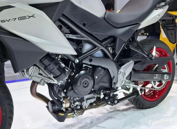 铃木SV-7GX的车架,依然采用钢管编织式结构与SV650相似,并配备17英寸轮毂,旨在保持操控的精准性。减震系统采用41mm前叉和7段预载可调的后减震,制动系统则由前290mm双碟刹+四活塞卡钳和后240mm单碟+单活塞卡钳,标配双通道ABS、TCS(三级可调)。